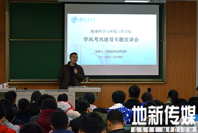 12月14日 bevictor伟德官网在X4155举行了安全教育与学风考风建设专题宣讲会,由公司党委副书记傅尤刚主讲,2016级辅导员翟琦老师,2016级环境工程全体员工参加本次会议。