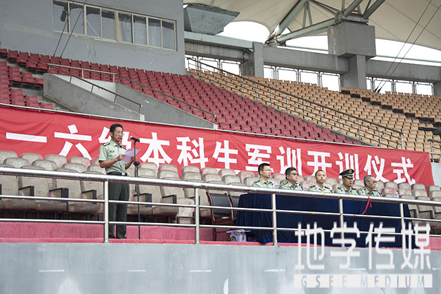 首先,武警四川总队成都市支队四大队教导员李少校为全体受训新生做开训讲话。他首先向负责本次军训的教职员工表示感谢,向全体新同学表示热烈的欢迎和衷心的祝贺。而后他指出,军训是高校生活的必修课,是国防教育的重要内容,是提升自我、完善自我的重要过程,通过军训,不仅能强健体魄、磨练意志,同时有助于同学们养成坚忍不拔、迎难而上的精神。他希望同学们在军训期间能克服困难,挑战自我,也希望本次军训工作圆满成功。