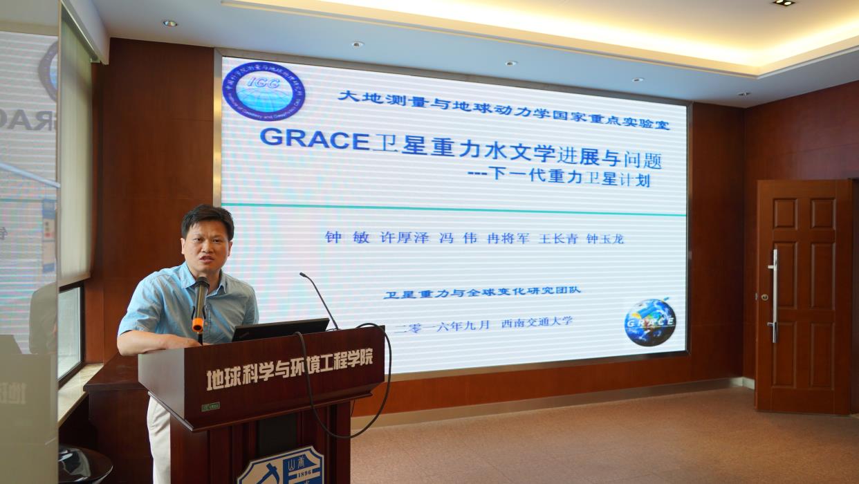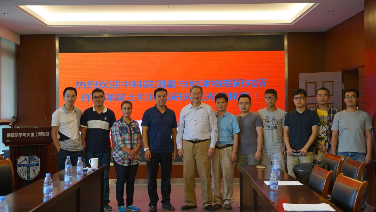 许厚泽院士做了题为《中科院测量与地球物理研究所主要科研活动》和《Satellite Gravity Mission Research in China: Progress and Outlook》的学术报告,介绍了测地所主要从事的GNSS/北斗、地震大地测量、重力、动力学及其它科研活动,也介绍了近10年来卫星重力测量的研究进展,分析了GRACE卫星的缺陷,展望了中国的卫星重力测量任务。钟敏研究员做了题为《GRACE卫星重力水文学进展与问题及下一代重力卫星计划》的报告,讲述了卫星重力的研究背景和意义、利用GRACE监测华北与东北地下水储量的变化及下一代重力卫星计划的内容。报告会持续到下午18:00,王齐荣书记、朱庆教授、范东明教授、袁林果教授、游为博士及其他大地测量方向研究生参加了此次报告会。