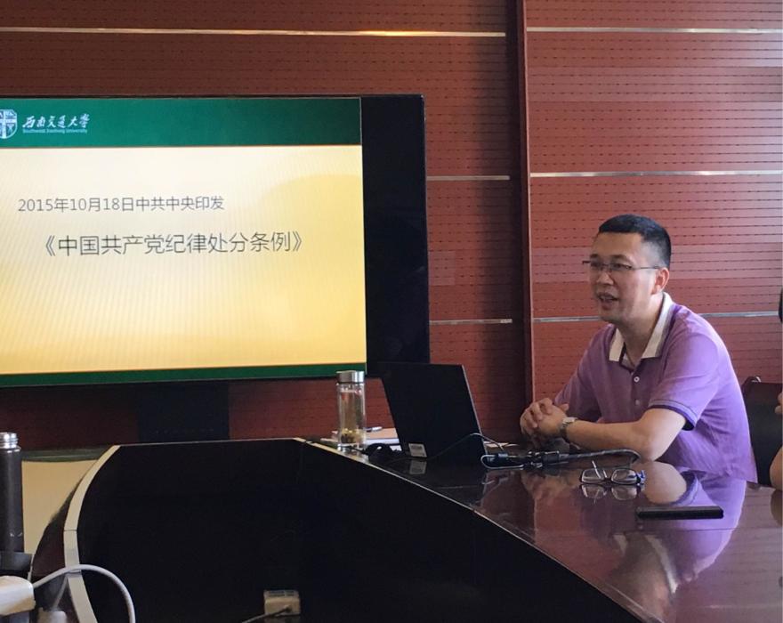 6月7日上午9点半,bevictor伟德官网教工党支部“两学一做”之《条例》和《四种形态》专题党课在X4531召开。公司教工消防、行政、学工组党支部全体教师党员参加了本次学习会。会议特别邀请到公司党委副书记、纪委书记傅尤刚出席并讲党课。