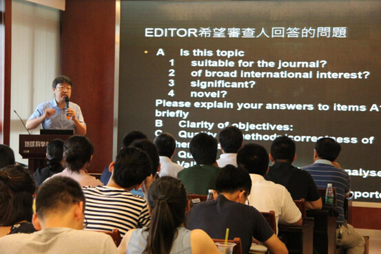 在一片掌声当中,胡卸文教授代表广大师生对董家鈞教授的到来表示了热烈欢迎。讲座开始,董家鈞教授首先介绍了SCI论文写作的大的背景,目前在全世界范围内,中国的论文数量几占一半,这给审稿人带来了巨大的压力。如何写出合要求、高质量、同时又能“投乎审稿人所好”的好文章,这是广大科研工作者需要揣摩和思考的问题。接下来,董家鈞教授结合自己多年撰写论文和审稿的经验,从以下方面给出了自己的看法:首先,写作目的,董教授认为科研人员在撰写论文之前应当明确目的,即真正明确自己所要研究的内容和渴望获得的成果,而不是仅仅将发表论文作为科研或工作道路上的又一枚“勋章”,只有这样,才能在科研和论文撰写过程中摆正心态,把审稿人当成协助你完成研究的助力者,而不是找你麻烦的人;接下来,董教授介绍了优秀SCI论文所必备的两个关键点,即Significance和Novelty,这两个词贯穿整个讲座始终,他指出一篇优秀的论文应当具备以下几个要素:主题清晰、方法正确、资料品质优良、假设合理、结果经得起验证;对于文章写作结构,董教授指出应当通过研究背景介绍着重强调两个关键点,而作为一篇论文之浓缩和精华的摘要,其获得审稿人驻目的时间要远超文章本身,应当花费时间精雕细琢;最后,对于广大研究生普遍担心的文字语法问题,董教授认为大家完全可以消除恐惧,在抓住文章两个关键点这一前提下,站在审稿人和读者的角度,进行反复咀嚼和修改,一定能够完成一篇高质量的SCI论文。