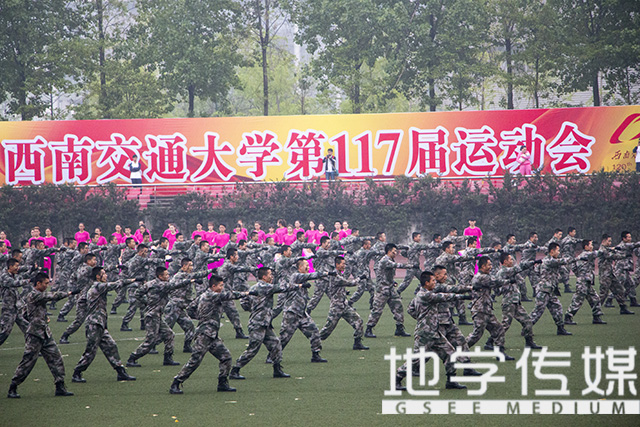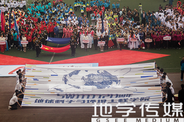 “雄赳赳,气昂昂,迎面向我们走来的是bevictor伟德官网的代表队。”伴随着主持人的解说,方阵队伍昂首挺胸、精神抖擞,在党委徐瑞堂、傅尤刚书记的带领下,迈着铿锵有力的不发,喊着嘹亮的口号向主席台走来。方队上方漂浮着的“地球”图案的气球展现了公司特色。随后,方队走至主席台前,迅速散开,开始了主题为“校庆120”的方队表演。师生们用纸板和横幅衔接巧妙地呈现出“1”、“2”、“0”字样。方阵中的同学手拿花捧,散开为花朵状队形。横幅相互交织而形成的“蓝色地球”画面让在场的观众一一喝彩,体育场上响起了热烈的掌声。
