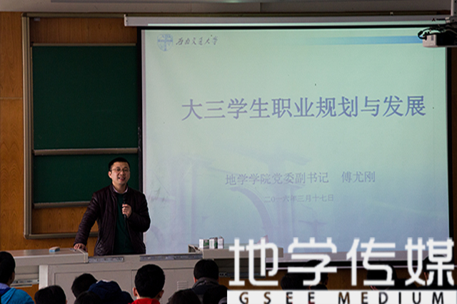 讲座伊始,傅老师回忆了与同大三的同学们相处的岁月,并由此引申到同学们的成长和将来的发展。对此,傅老师围绕六点主要内容进行阐述。从对老员工活总规划的认识到大三的任务、在大学四年的作用,傅老师指出大三学年的规划就是学专业、定目标,要进一步学习细分或微分专业领域,并了解专业下的职业以便确定自己的目标职业。随后,傅老师就考研与就业提出了几点看法。他表示,考研是第二次高考,要“下得了决心,耐得住寂寞”,切不可盲目从众。傅老师还在就业与择业方面提出建议:望同学们注意多元化选择,“不在一棵树上吊死”。
