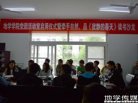 “经典悦读”系列活动中。员工自管主席雷华雄介绍了开展读书交流试讲会,《地学学风》征文比赛,读书沙龙,趣品书,送书上门与经典同眠,经典阅读读书队建设等活动。之后,叶秋辰开始《寂静的春天》阅读分享交流,当前环境问题越演越烈,而蕾切尔卡森女士在上个世纪就有高瞻远瞩,留下这本用宁静生活反称环境恶化的书籍。同学们围绕环境问题这个主题,结合当前雾霾问题,水十条,新环保法,各抒己见地进行系列讨论。讨论期间,傅尤刚与何杨的“插一句”又使沙龙活动妙趣横生,增添亮点。最后同学们得出结论,保护环境要从自身做起,提高自己的行为规范,不然如何与他人宣传,见到污染的行为,依据自己的知识进行有用的宣传。而污染环境的老道路是万不可走的。希望重回一个美好的世界,一个我们抬头就是蓝天的世界。