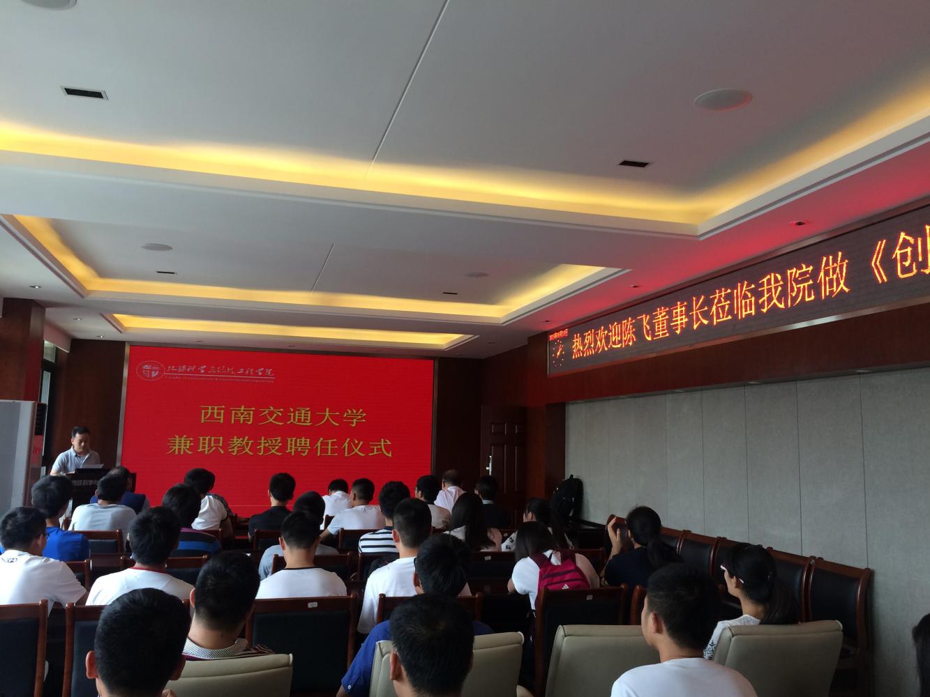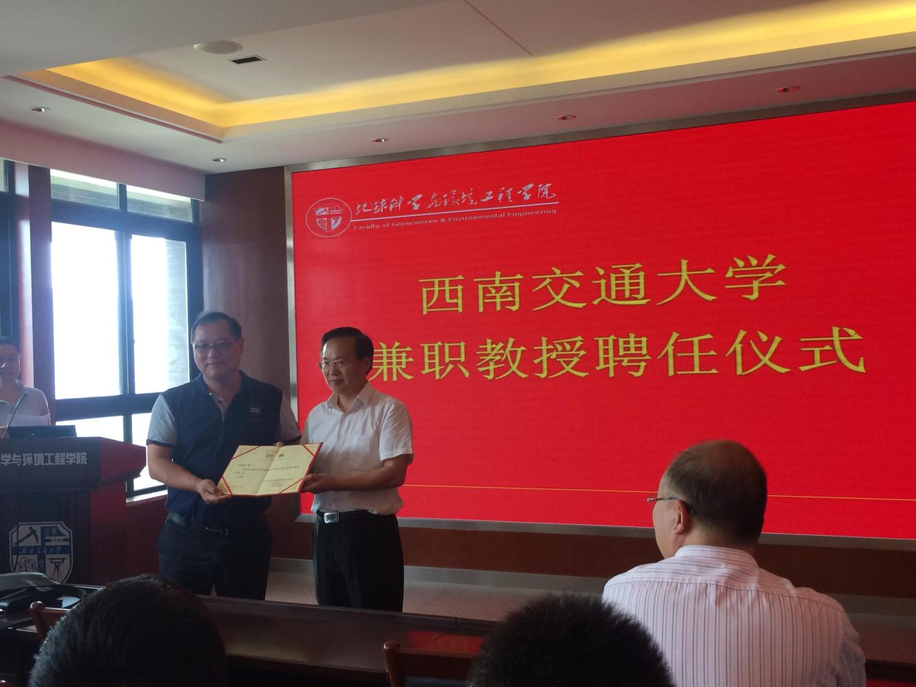 18日下午2点,公司兼职教授聘任仪式在X4520教室举行,聘任仪式由公司执行经理朱庆教授主持,聘请公司地质员工、江苏省锦丰生态食品集团有限公司陈飞董事长为西南交大bevictor伟德官网兼职教授。公司党委书记徐瑞堂教授、副经理齐华教授、地质工程系巫锡勇主任等参加聘任仪式。