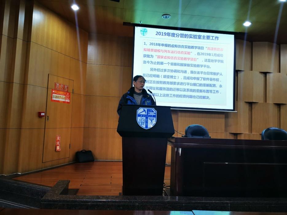 副经理欧阳峰进行2019年度个人述职。主要围绕双一流本科建设工作、测绘工程专业认证工作、2019级培养方案修订、四川省教改项目、青年教师教学竞赛、2020级推荐免试研究生工作、升机教学名师、测绘工程卓越班纳入学员管理等方面做工作汇报。