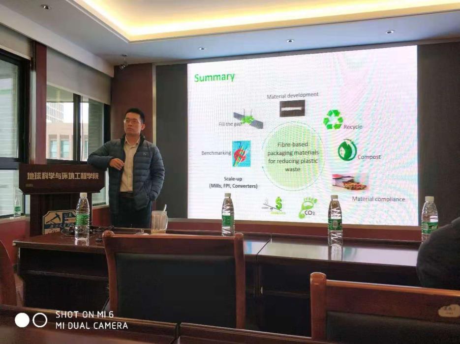 2020年1月10日早上10:00,应公司环境工程系教授范美坤邀请,来自加拿大林产品创新研究院(FPInnovations)的李庭杰博士在公司进行学术讲座。李庭杰博士在X4520为公司师生进行了主题为《减少塑料污染:纤维基生物材料的研发与应用》的精彩学术报告。