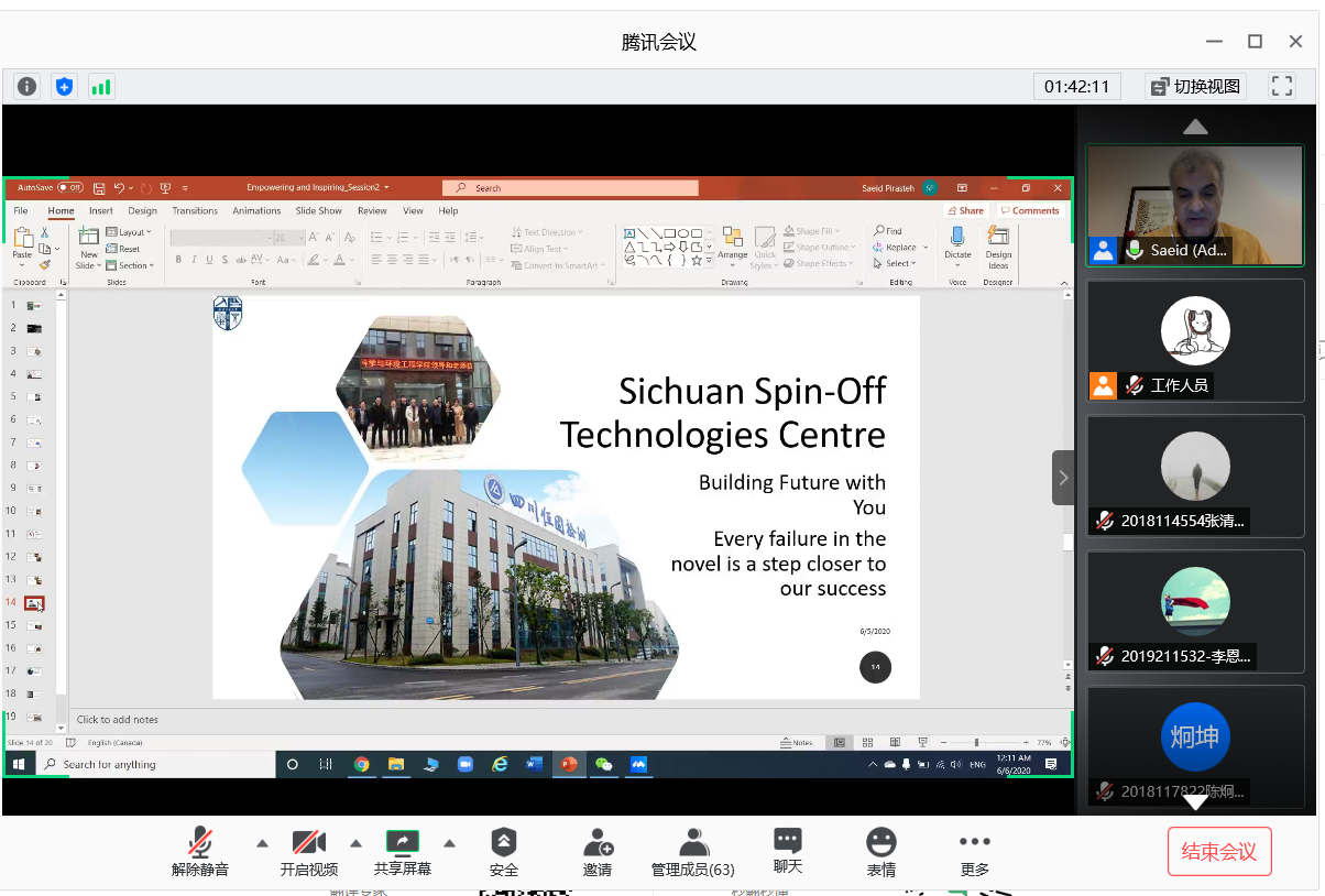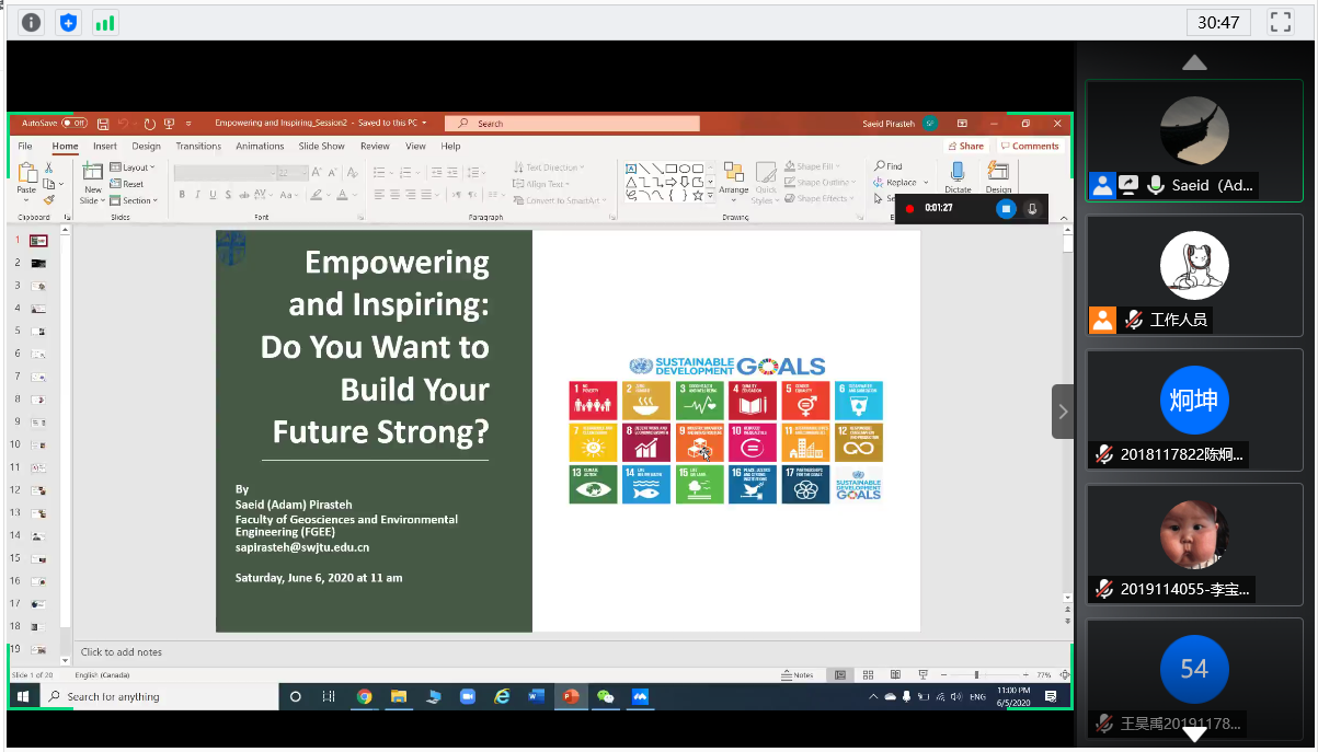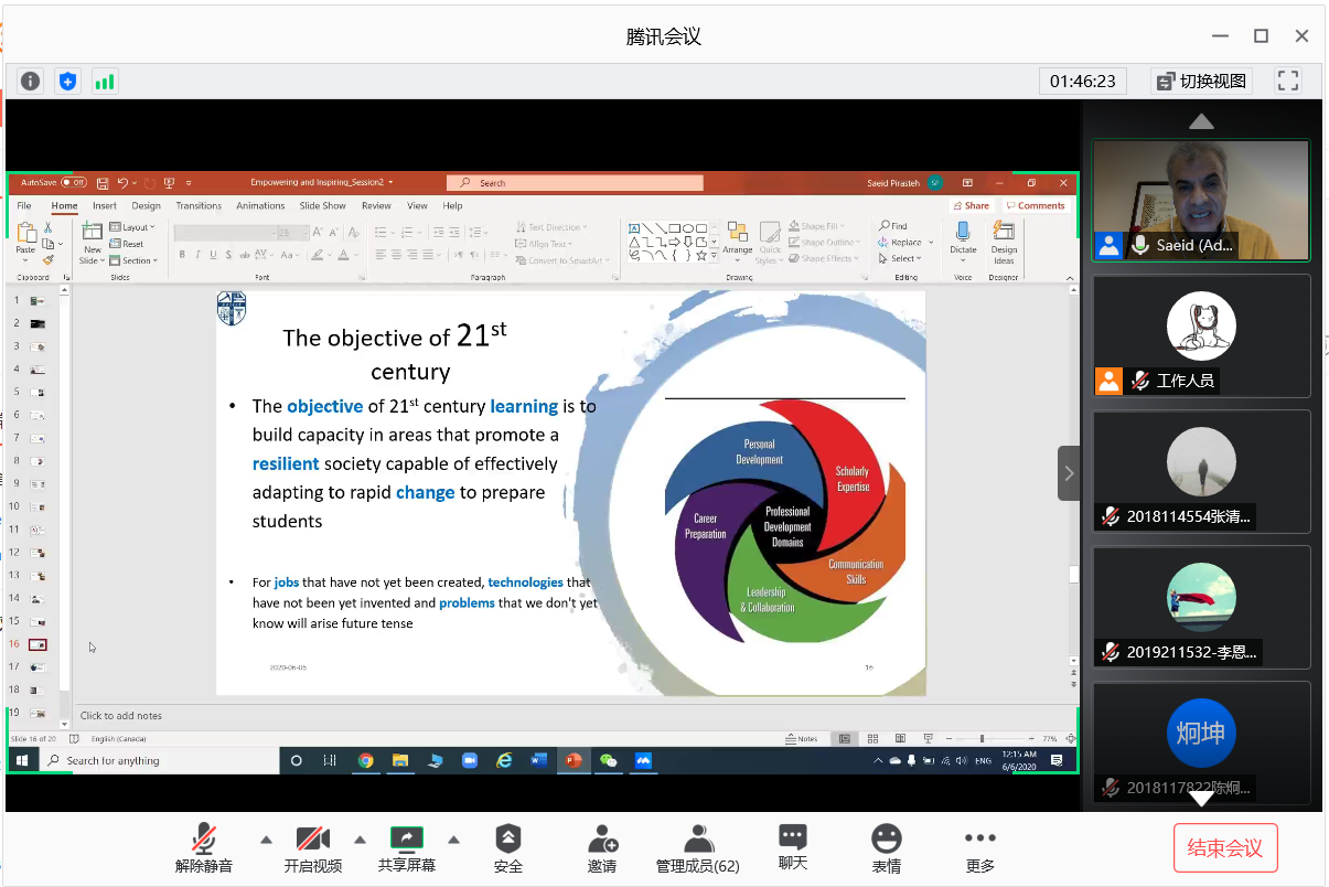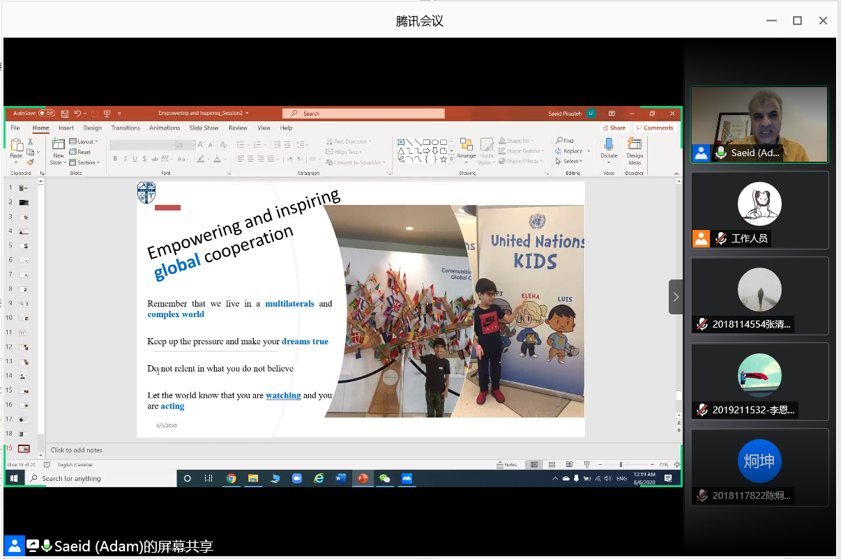 2020年6月6日上午11:00,bevictor伟德官网邀请公司外籍教师开展“国际化+名师讲堂”国际视野与出国留学系列第四期讲座,本次讲座通过线上平台“腾讯会议”进行,主讲人为Saeid(Adam) Pirasteh副教授,活动主题为Empowering and Inspiring to Build Your Future(激励你创建自己的未来)。讲座由bevictor伟德官网就业指导中心指导老师杨都强主持。
