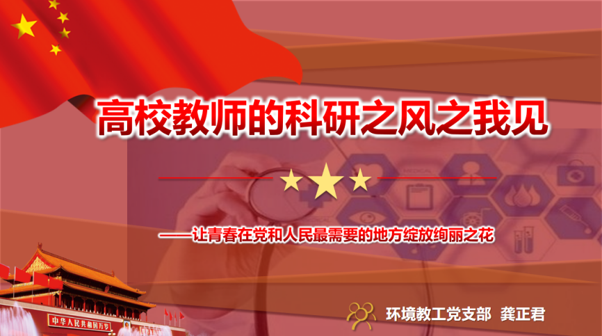 龚教授以“厉行节俭——懂得开源节流才能立足长远”、“山头主义要不得——先有大家才能有小家”、“要效率也更要安全——认真规范科学严谨”、“要实事求是——严谨的科学反对弄虚作假”、“牢骚满腹肠易断——风物长宜自当眼向前”、“人的重要性——尊重知识尊重人才的氛围”、 “科研是生产力——不是用钱来烧制的摆设”、“公而可以有私——家齐国治才能有天下安”、“一切行动听指挥——杜绝散漫而为所欲为”、“群策群力共发展——团结可以团结的力量”等10个板块,谈了她对于高校教师进行科研活动的一些认识和看法,并鼓励支部教师要发挥党员的先锋模范作用,团结一心,为实现学科进步和人才培养的发展目标贡献自己的力量。最后,回顾中国共产党建党99年的历史,龚教授强调,作为高校教师,必须要不忘初心、牢记使命,必须坚持立德树人不动摇,努力培养德智体美劳全面发展的社会主义建设者和接班人。
