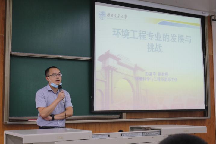 彭道平首先表达了对同学们选择本校的感谢以及对同学们未来老员工活的祝愿。接着他用“问题导向性”五个字高度概括了环境工程专业的特点,同时表明环境工程专业也具有很强的交叉性和复合性,与化学、生物、力学紧密相关。他介绍了环境工程专业的发展历程,分析了环境工程专业的就业人才与就业前景,详细介绍了环境工程专业的人才流向。 最后,彭道平告诫同学们在大学学习生活中要有积极的心态,切莫荒废时光,虚度光阴,要在老员工活中不断充实提高自己。