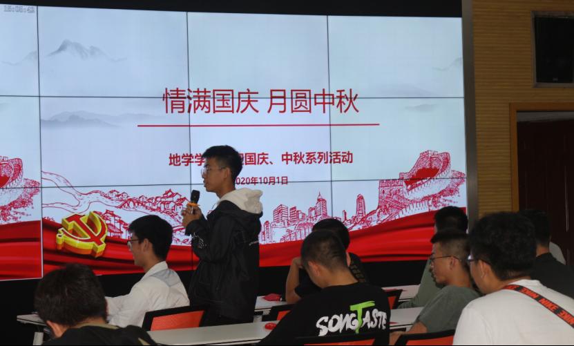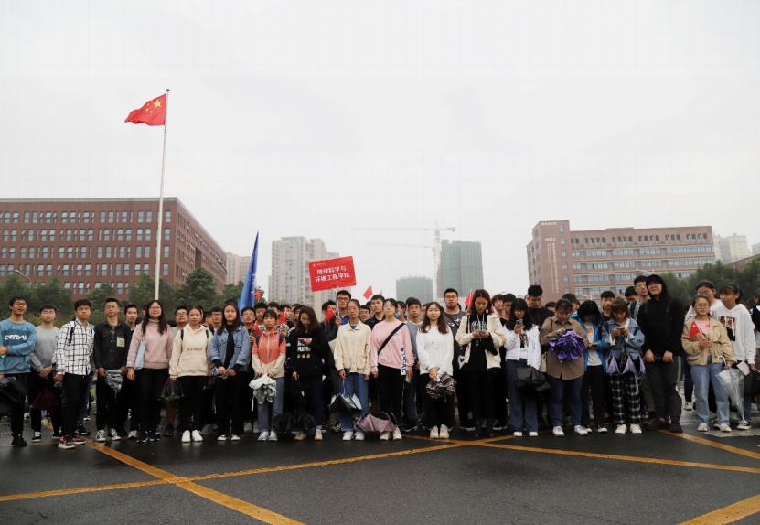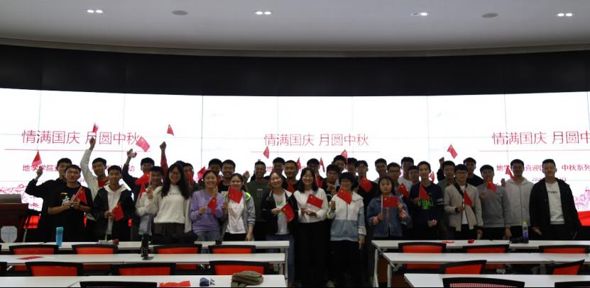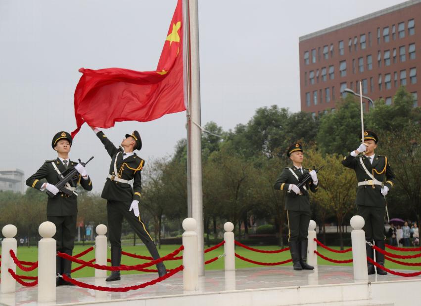 红旗高展,国歌高奏,上午10月1日上午8时,地学学子以蓬勃朝气参加公司组织的升国旗仪式。