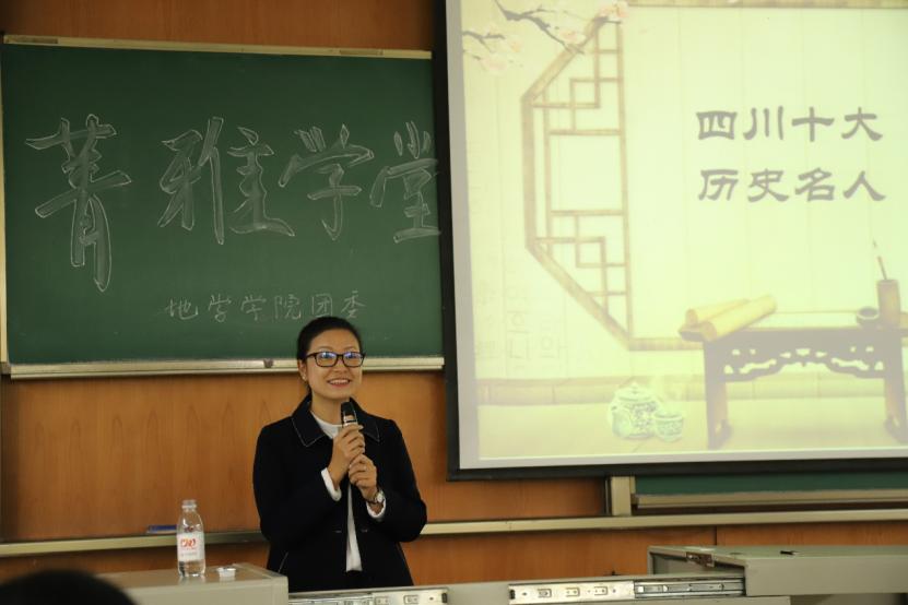 羊利贞在讲座开始前先祝愿了bevictor伟德官网成立十周年,接着开始讲述四川十大历史名人:大禹,李冰,落下闳,扬雄,诸葛亮,武则天,杜甫,苏轼,杨慎,李白,大致介绍前九位所处的时代和主要事迹,着重讲述最后一位“千古一诗人”——李白。她播放了一段采访视频——“每个人心中的李白”,受访人从中国本土人员到外国友人,从唐诗研究领域的专家到各行各业人士,为同学们展示了李白“神”一样的存在。