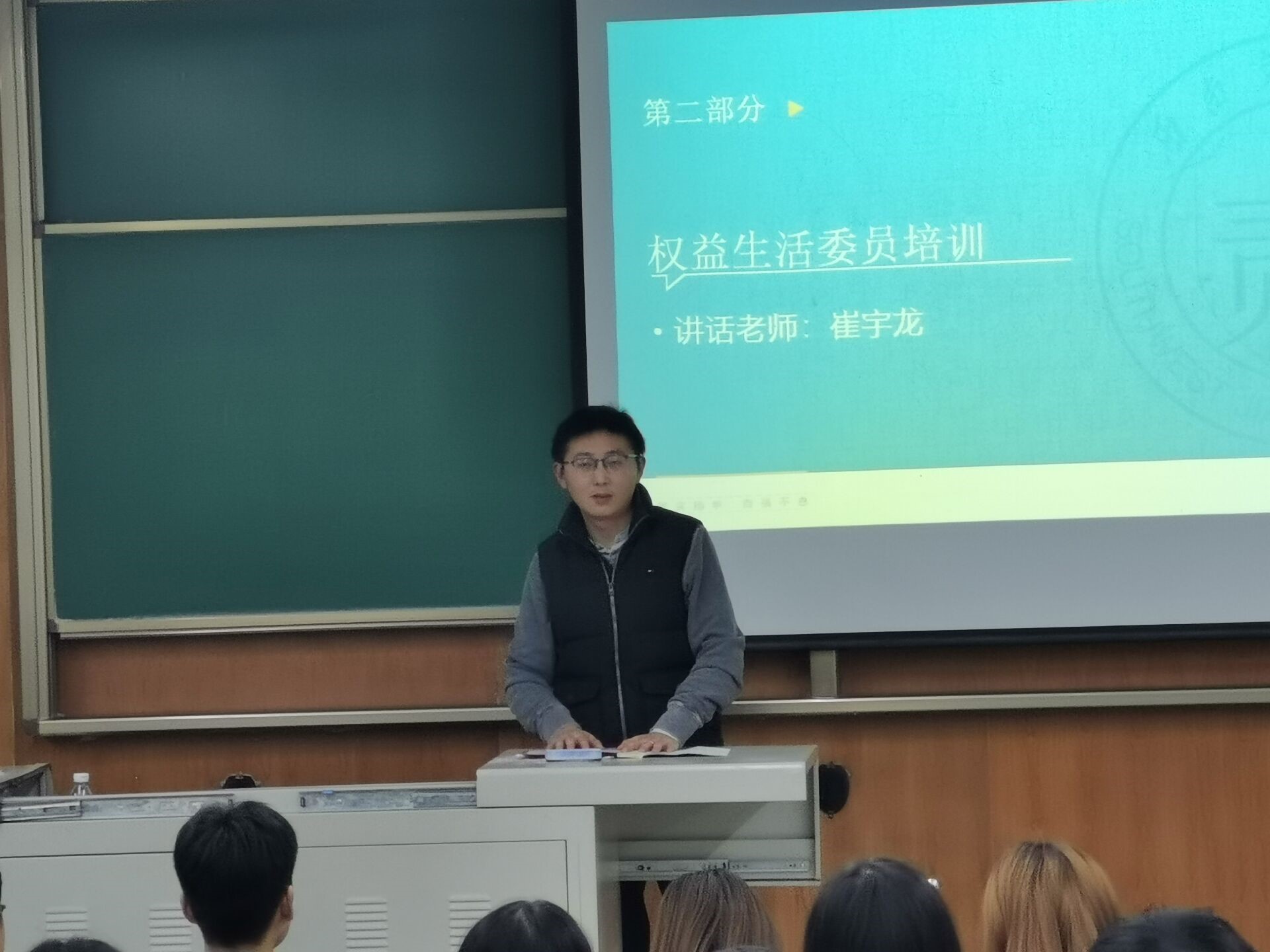 然后由员工园区负责老师崔宇龙老师进行权益生活委员培训