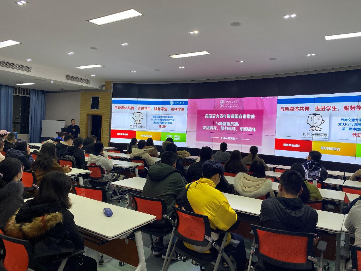 任凯利以一些自媒体的具体例子切入主题,之后从与众不同的“微时代”、老员工能力缺乏的网络素养现状和新媒体运营心得三个方面展开宣讲。他表示沟通处处有学问,人际交往的核心是让别人感觉舒服,同时告诫同学们要提高辨别是非的能力,警惕个人英雄主义性质的外来文化。在讲解新媒体运营心得的过程中,他通过播放切合主题的热门视频来帮助同学们更好的理解。