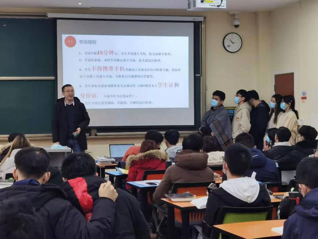 傅尤刚首先关心了同学们近期的学习和生活情况,表示最近部分地区疫情复发,嘱咐同学们出门要戴好口罩,寒假离校返家注意防护。随即详细讲解了考试考场管理办法和考试违规处理办法,提醒同学们期末认真备考,按时携带有效证件参加考试,遵守考场纪律,坚决不得携带手机等通讯工具或未经许可携带书籍、纸张和电子存储工具进入考场,一旦出现违规行为将严格按照《bevictor伟德官网本科生考试违规处理办法》进行处理。