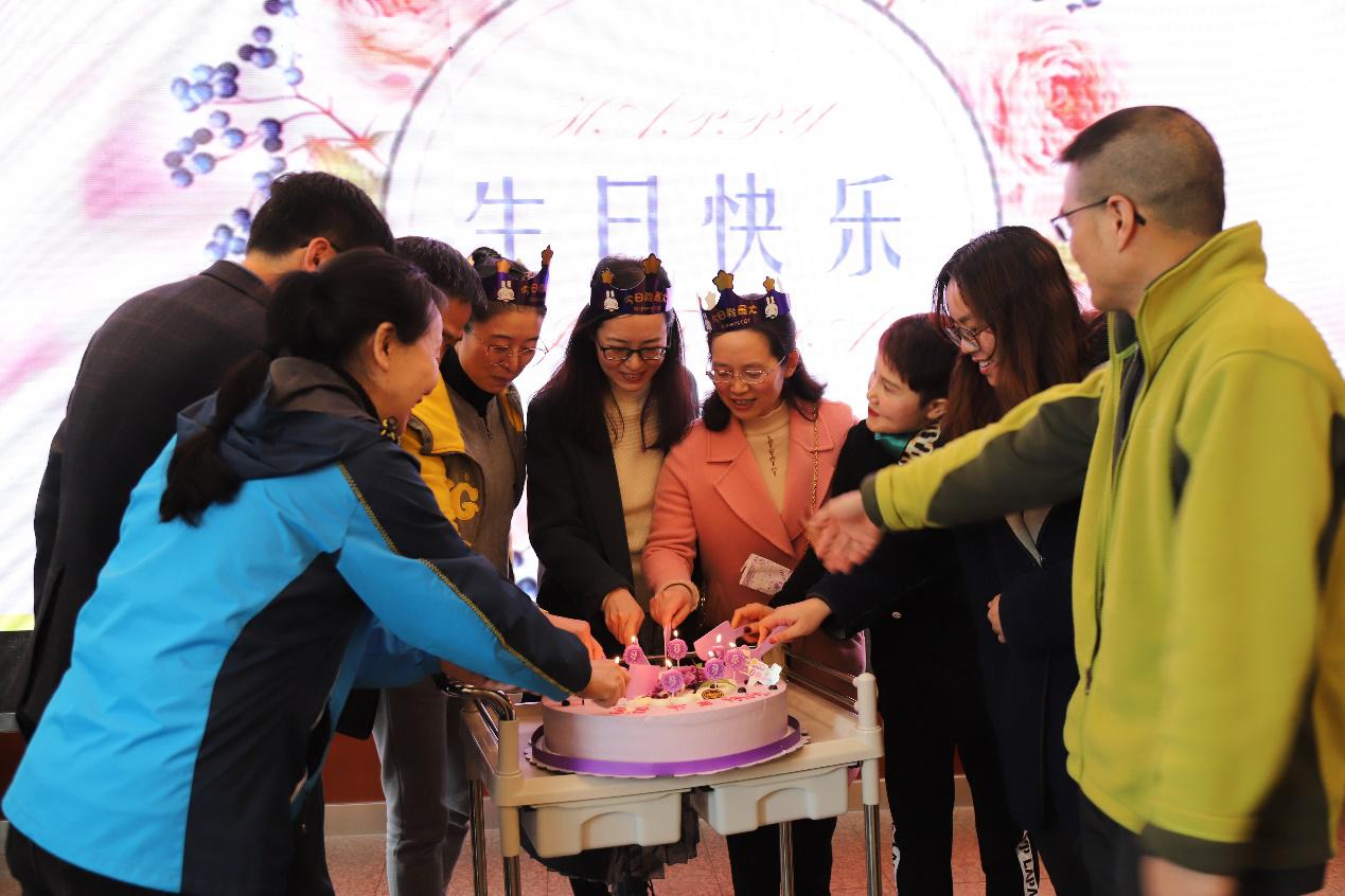 座谈会现场,为公司女教职工老师庆祝生日。
