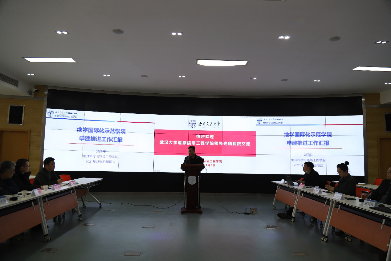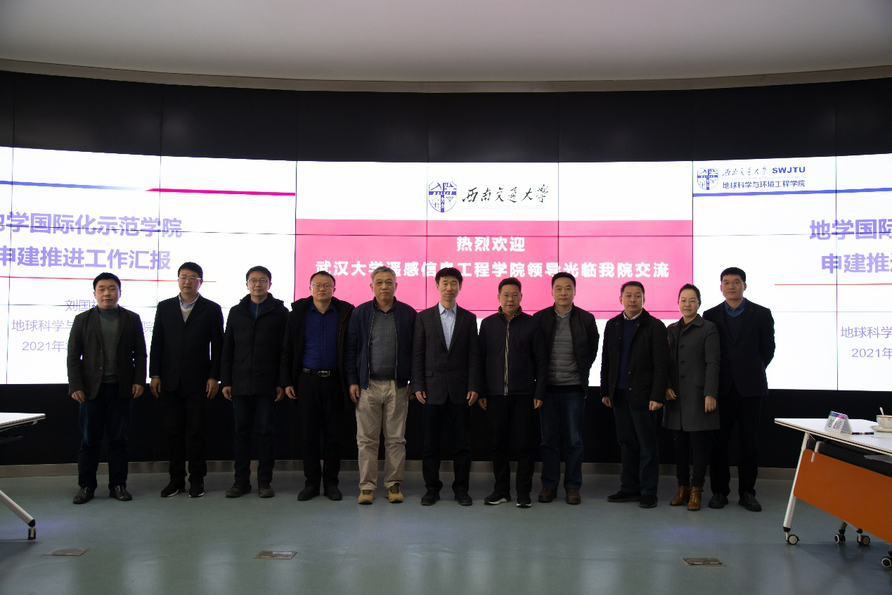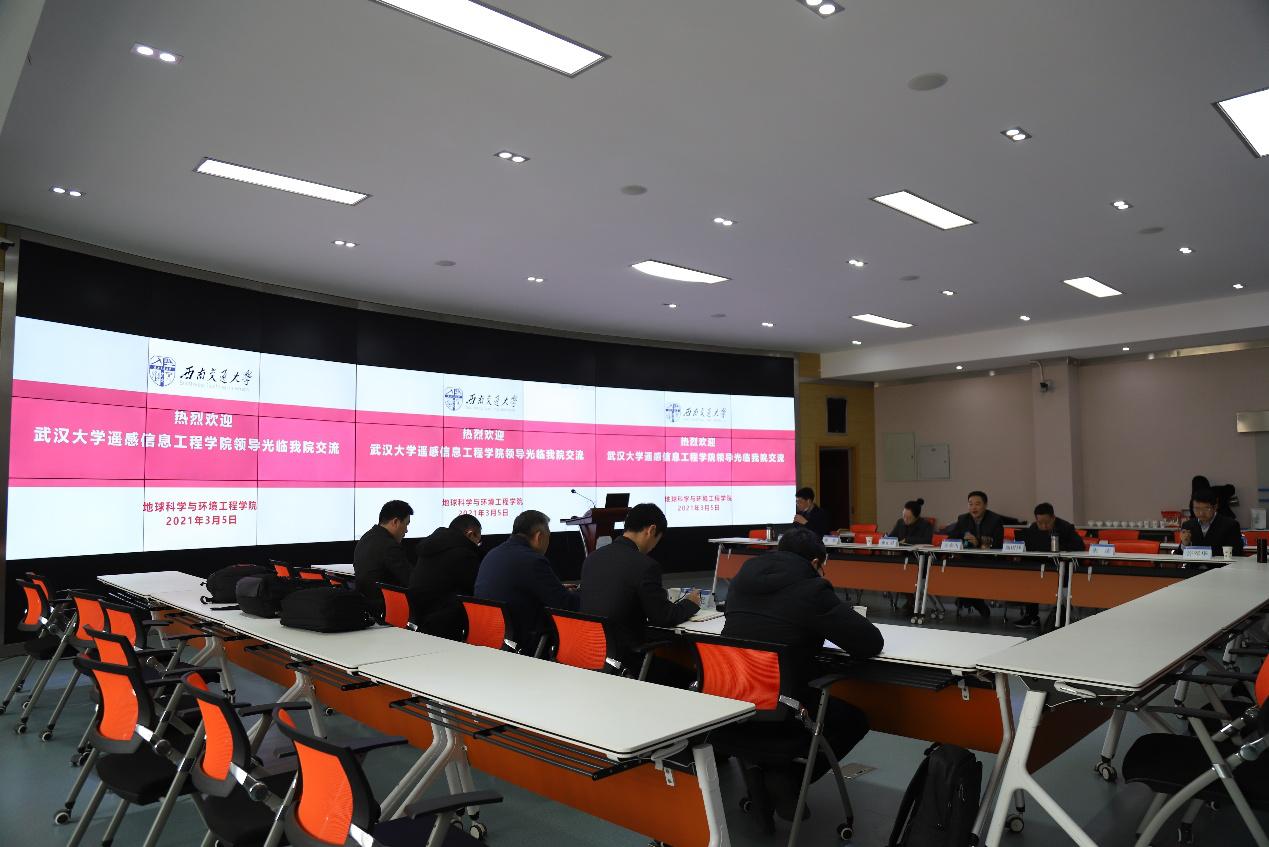 3月5日,武汉大学遥感信息工程公司经理张永军、副经理方圣辉、副经理乐鹏、副经理龚龑以及公司党政办主任万舒良等一行莅临西南交大公司开展调研交流活动。公司党委书记关秦川、执行经理刘国祥、党委副书记 副经理许军华、副经理朱军、副经理赵晓彦、副经理龚正君、朱庆教授等参加调研交流会。