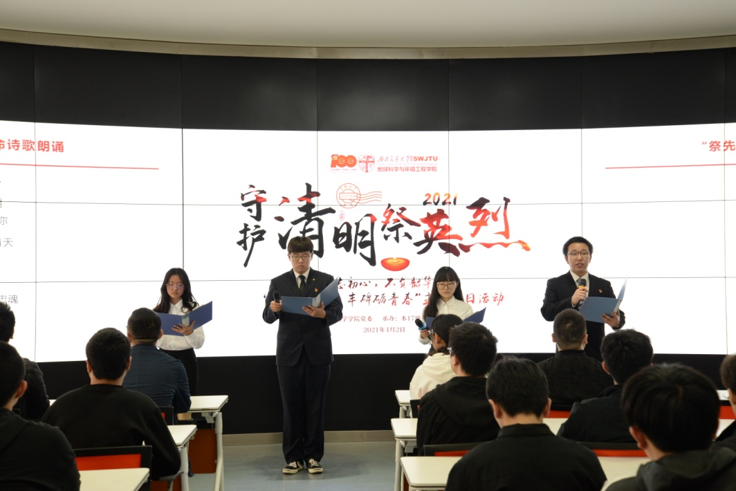 4月2日,地学学院于X4243多功能报告厅开展“不忘初心,不负韶华”之“清明祭英烈 丰碑砺青春”主题党日活动,活动由公司党委主办,本2017级联合党支部承办,本2017级党支部书记主持。公司党委副书记参加活动并发表讲话,本2017级联合党支部全体党员、员工代表等参加活动。