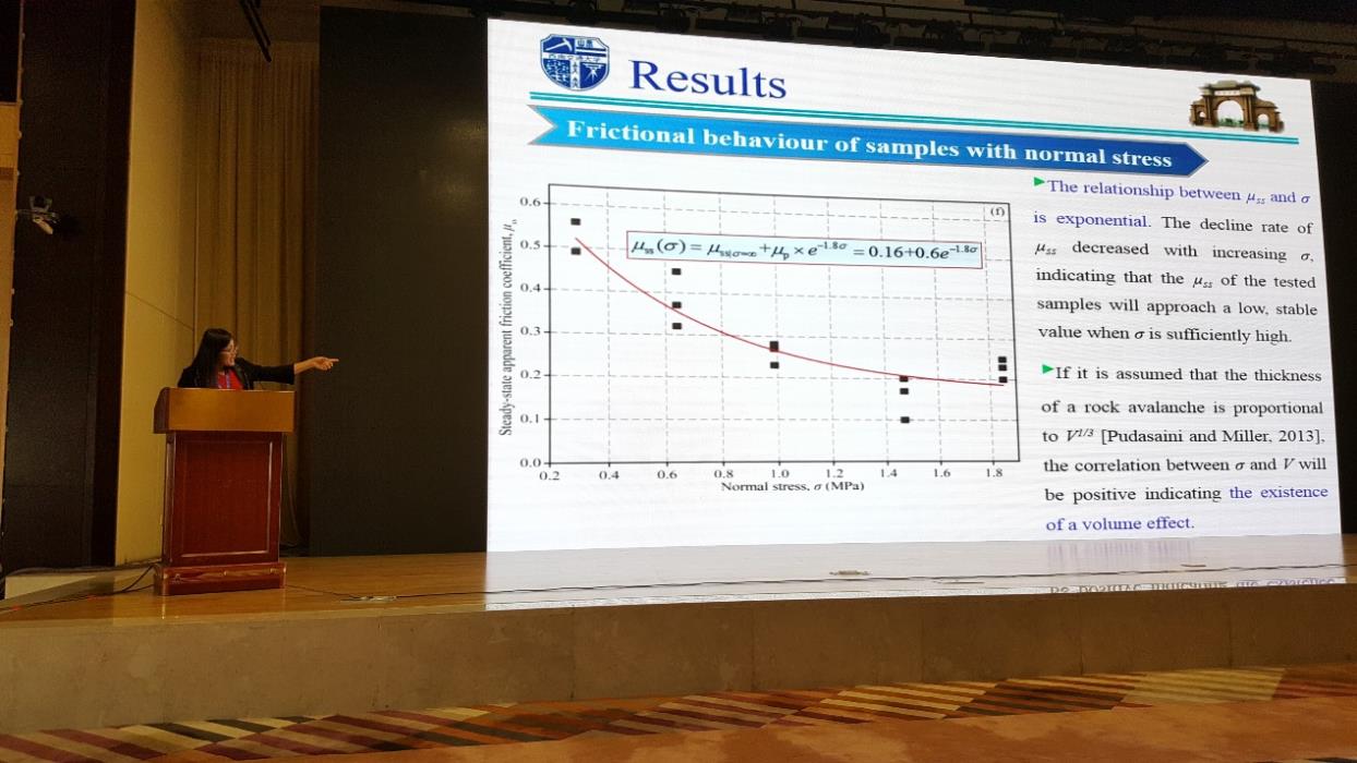 Pref. Cheng Qiangong and his team attended the academic event. In the parallel session of engineering geological theory of new era, Dr. Wang Yufeng, young teacher, gave an academic report on the topic of “Study on the volume effect of rock avalanche”. The report won the enthusiastic discussion among the participants. The relevant research results were recommended as one of the most prominent advances in engineering geology in China in the past decade by Prof. Wu Faquan, Secretary of the Engineering Geology Committee, in the closing ceremony of the conference. In the youth engineering geology forum, Ph.D. student Li Yan conducted an academic report entitled “Method for determining soil dynamics parameters in centrifuge shaking table tests”.