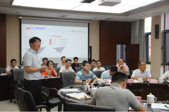 Then, Hu Xiewen made a qualification assessment report on the first-class doctor's degree authorization center in Geological Resources and Geological Engineering of Southwest Jiaotong University, and introduced the general situation of this discipline and the recent developments of degree authorization center mainly from the professional overview, educational objectives, quality assurance and continuous improvement of four aspects.