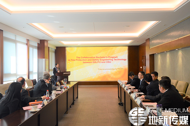 On March 22, the school of Geosciences and Environmental Engineering hosted a symposium on deepening the cooperation between Oklahoma State University at x4520. Dr. Randy Kluver, Dean of Global Research and Cooperation; Dr. Bret Danilowicz, Dean of Faculty of Arts and Sciences from OSU; Dr. Norb Delatte, Dean of Civil and Environmental Engineering from OSU; Dr. Vivian Wang, Director of China Programs from OSU; Professor Liu, Dean of the School of Geosciences and Environmental Engineering from SWJTU; Professor Wang, Secretary of CPC from SWJTU, etc. attended the symposium. The symposium was presided over by Professor Liu, Dean of the School of Geosciences and Environmental Engineering.