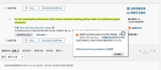 According to the latest updated data from Essential Science Indicators (ESI), Professor Zhao Rui, head of the Department of Environmental Science and Engineering, Faculty of Geosciences and Environmental Engineering, is the first author of the paper: "For the sustainable performance of the carbon reduction labeling policies under an evolutionary game simulation "The number of citations ranked among the top 1% of economics and business disciplines in the world, and was included in ESI Highly Cited Papers. The paper was published in the SSCI index journal "TECHNOLOGICAL FORECASTING AND SOCIAL CHANGE (IF=4.04)".