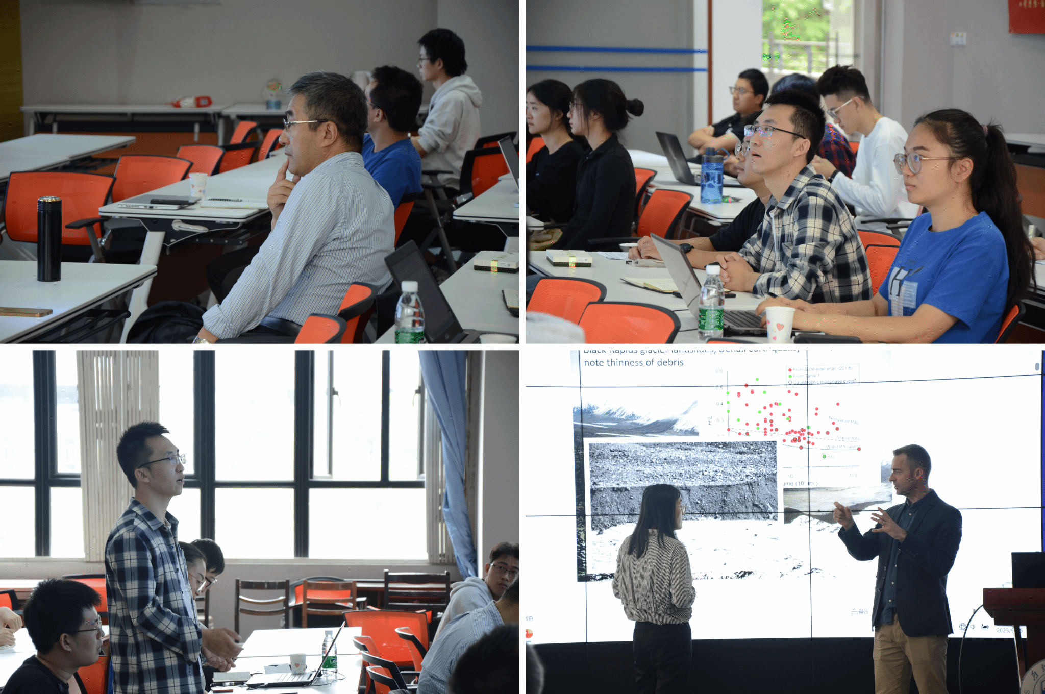 报告期间,Dunning教授聚焦冰川环境中发生的高速远程滑坡(冰上高速远程滑坡),首先提出冰上高速远程滑坡广泛分布于青藏高原、天山、阿拉斯加、阿尔卑斯、新西兰等全球高寒地区,发生频率呈增高态势,是全球气候变暖的警示器。由于冰川表面的低摩阻特性,冰川区高速远程滑坡比一般高速远程滑坡流动性更强,堆积范围更广,极易引发冰湖涌浪甚至冰湖溃决等次生灾害,灾害性更强,因此,亟需建立完备的全球冰川区高速远程滑坡数据库,要通过地震信号实时监测冰上高速远程滑坡的失稳及运动过程。其次,Dunning教授强调了冰川区高速远程滑坡的灾难性,伴随着全球气候变暖,冰川退缩,如果高速远程滑坡事件发生于冰湖近岸坡,它们进入冰湖或海湾后会引起浪涌,造成次生灾害,扩大危害程度。最后,Dunning教授强调冰川区高速远程滑坡要比我们预想的更普遍,发生频率被严重低估,应该从失稳机制及其影响因素、沉积学特征、滑坡时序变化特征等多方面、多手段、全方位的研究冰川区高速远程滑坡,以获取更全面、更真实的冰上高速远程滑坡分布规律及发育特征,为相关防灾减灾工作提供更合理的依据。